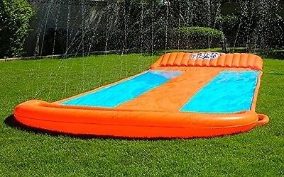 Studio : SJ Shop Publisher : SJ Shop Binding : Toy Product Description The Bestway H2O Go! 18' Double Water Slide has three speed ramps. Perfect for racing your friends. Featuring a tough, inflatable launch pad, the H2O Go! provides a smooth landing that glides you onto the slide. No more hard landings! The added Splash Lagoon creates water pool at front for BIG SPLASH TAKE-OFF! The landing pad and lagoon funnel water onto the slide for a long wet ride with a water cascade along side to keep it slick. End bumpers collect water for A BIG SPLASH LANDING! The Bestway H2O Go! provides a smoother, faster, wetter and better water slide experience than ever before. A great way to have fun and keep cool this summer. 0