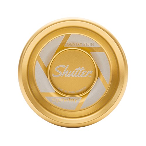 Name: AUTHENTIC Gold Shutter Yoyo in Hard Plastic Case by YoYoFactory Size: Standard Model: Gold Shutter Released 12/2014 Condition: New in Hard Plastic Case Color(s): Gold Manufactured By: YoYoFactory Materials: Metal Vendor UPC: 609459657737 Manufacturer UPC: 689076590105 Made In: China Assembled In: USA MSRP: $ 66.00 BBBS Item #: 2014-1050 Additional Info: * The Shutter is the signature model of current World YoYo Champion Gentry Stein. * Light metal yoyo * Each yoyo is presented in a Hard Plastic Case **Please contact Seller with any further questions.**Feature