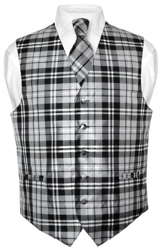 -. Binding : Apparel -. Brand : Vesuvio Napoli -. Color : Black Grey White -. Department : mens -. Feature : Matching Vest & Neck Tie Set / Great to wear with a suit or tuxedo -. ProductGroup : Apparel -. ProductTypeName : SUIT -. Title : Men's Plaid Design Dress Vest & NeckTie Black Gray White Neck Tie Set