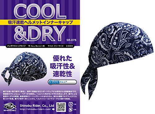 원본상품명: Shinobu Riders INVISTA社 COOLMAX ヘルメット インナ?キャップ (バンダナキャップタイプ) Navy Western SR-075