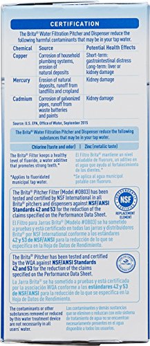 Feature : 5 pack of Brita replacement filters that fit all Brita pitchers and dispensers (Packaging May Vary) / Redesigned Advanced Brita filters are quick and easy to change, do not require pre-soaking and will not leave black flecks in your water / Reduces chlorine taste and odor, copper, mercury and cadmium to deliver healthier, great tasting water / For best performance, change Brita pitcher replacement filter every 40 gallons or 2 months / 1 Brita water filter can replace 300 standard 16.9 ounce water bottles