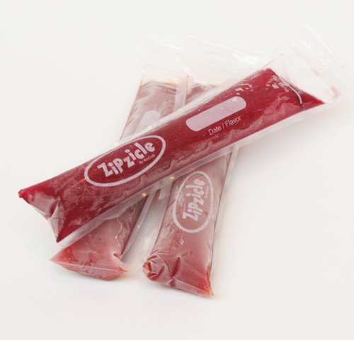 Studio : Zipzicles Publisher : Zipzicles Binding : Kitchen Product Description Just Fill, Freeze, Fun! Fills easily using a funnel or batter pen. Zip the top closed and place in freezer. Ice pops are 1.5" wide and approximately 8" long and each pouch holds approximately 3 fluid ounces. Dozens of recipes available. 0