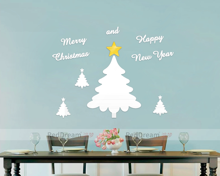 星星圣诞树英文字母节日装饰3D立体亚克力客厅创意自粘背景墙贴画