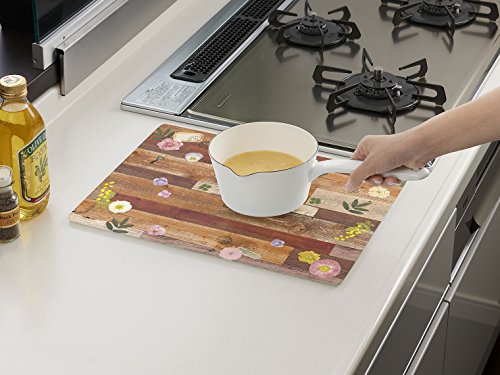 Flower & Wood Pattern Tempered Glass Cutting Board / Trivet , Size : 11.81 x 15.74 x 0.29 Inch