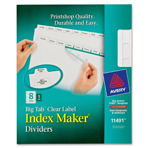Avery Big Tab Index Maker Clear Label Dividers, White, 8-Tab Set, 1 Set (11491)