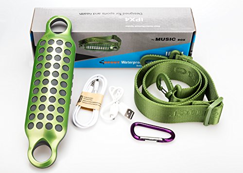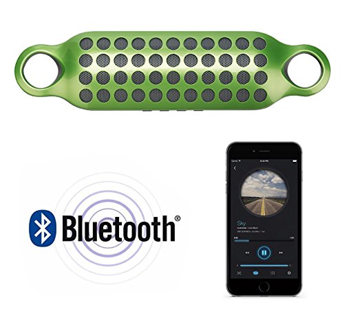 -. Feature : [HIGH COMPATIBILITY]: This outdoor bluetooth v4.0 speakers could wireleesly connect to all bluetooth-enabled devices such as, iPhone, iPad, iPod, Android, Smartphones,Tablets! / [PERFECT SOUND QUALITY]: Implemented with 2 X 5-Watt and 1 X 6-Watt acoustic drivers. 8-Watt of powerful sound from dual stereo drivers and passive radiators, perfect for any music style in your outdoor lifestyle! / [WATER-RESISTANT & SHOCKPROOF AND DUSTPROOF DESIGN]: IP44 Safeguards the subwoofer sound speakers against water submersion, plus dust and other small particles, you can listen to music both indoors and outdoors! / [VARIETY OF ACCESSORIES DESIGN]: Removable Green Strap + Climbing Hook Loop design for Outdoor Travel! / [BUILT-IN MICROPHONE DESIGN]: Allows you to use the speaker for phone-calls, perfect for hands-free calling!