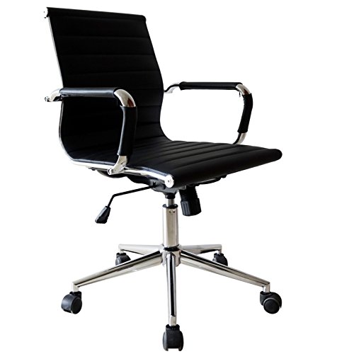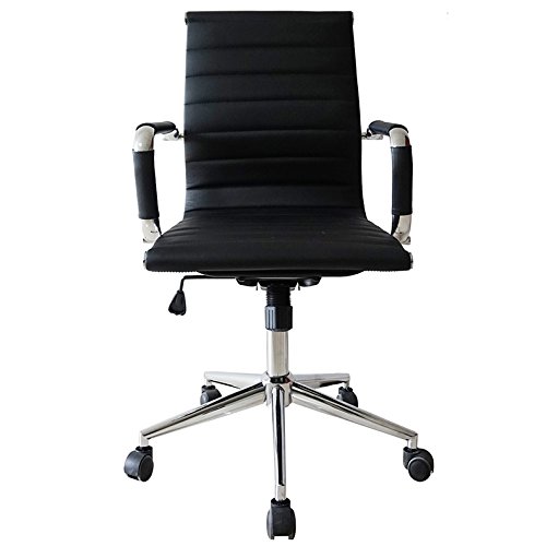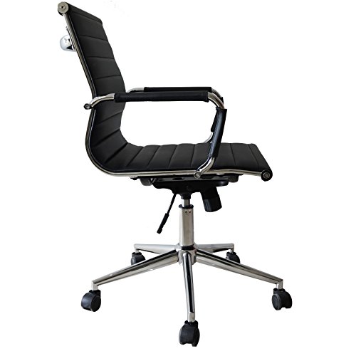 -. Brand : 2xhome -. Color : Black -. EAN : 0627434176851 -. Feature : Mid back with swivel chair / Modern ribbed stitching with PU leather upholstery, to offer extra comfortable in many hours. / Covered arm rests / Adjustable seat height and tilt tension control(Tilt up to 20 degrees or uP.R.Ight locking position). / Supportive chrome steel base with 5 wheel casters -. Label : 2xhome -. Manufacturer : 2xhome -. MPN : Euro (Black) -. PackageQuantity : 1 -. PartNumber : Euro (Black) -. ProductGroup : Furniture -. ProductTypeName : HOME_FURNITURE_AND_DECOR -. Publisher : 2xhome -. Size : Mid Back -. Studio : 2xhome -. Title : 2xhome - Single (1) Black - Modern Eames Mid back Ribbed PU leather with Arm Rest w/Tilt Adjustable Boss Executive Office Chair Work Task Computer Executive Arms Large Heavy-Duty Ergonomic -. UPC : 627434176851