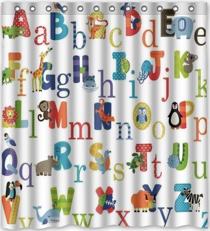 Shower Curtain Company ABC Alphabet Waterproof Fabric Polyester Bathroom Shower Curtain 66"(w) x 72"(h)