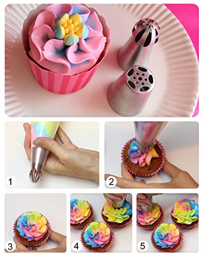 Russian Ball Piping Tips Coupler Set, 5-Pack Couplers for 2 Size Icing Nozzles 20 Disposable P...