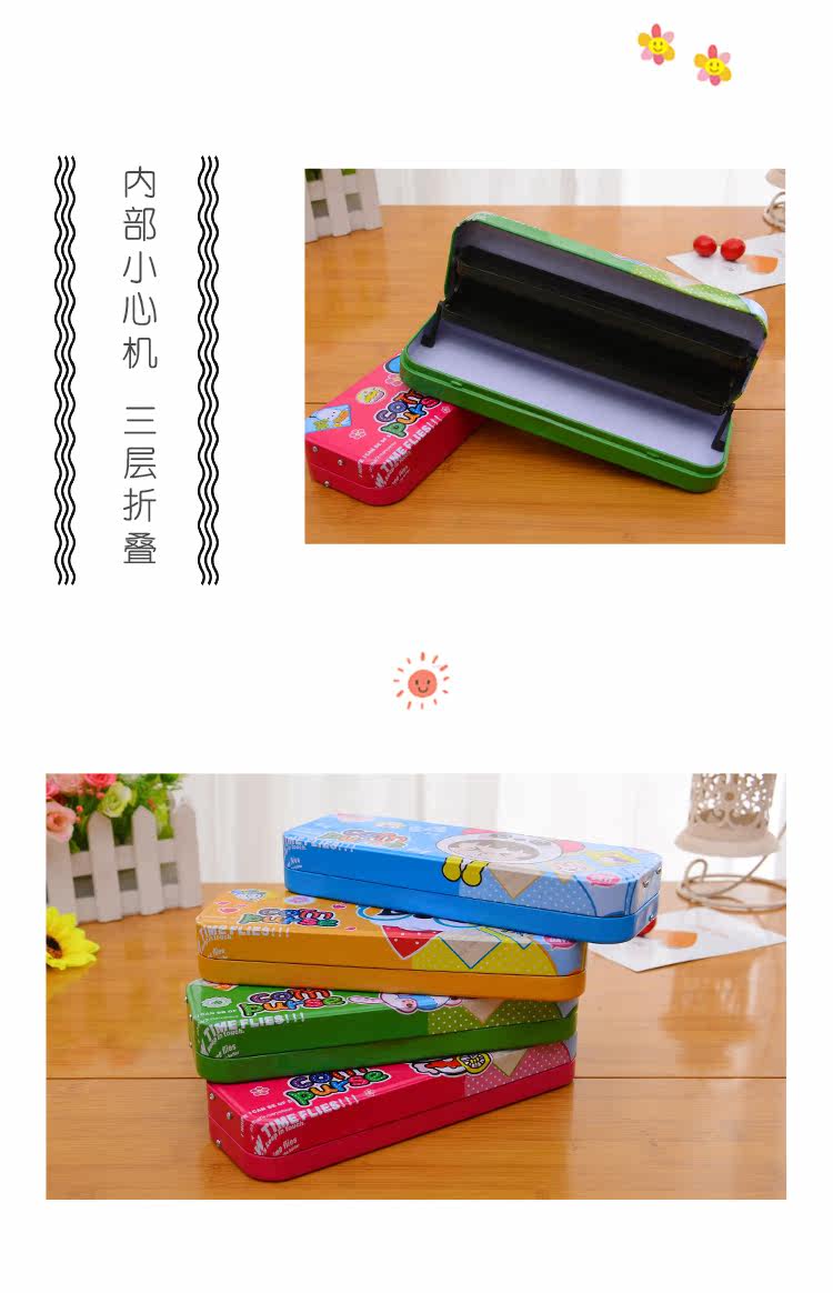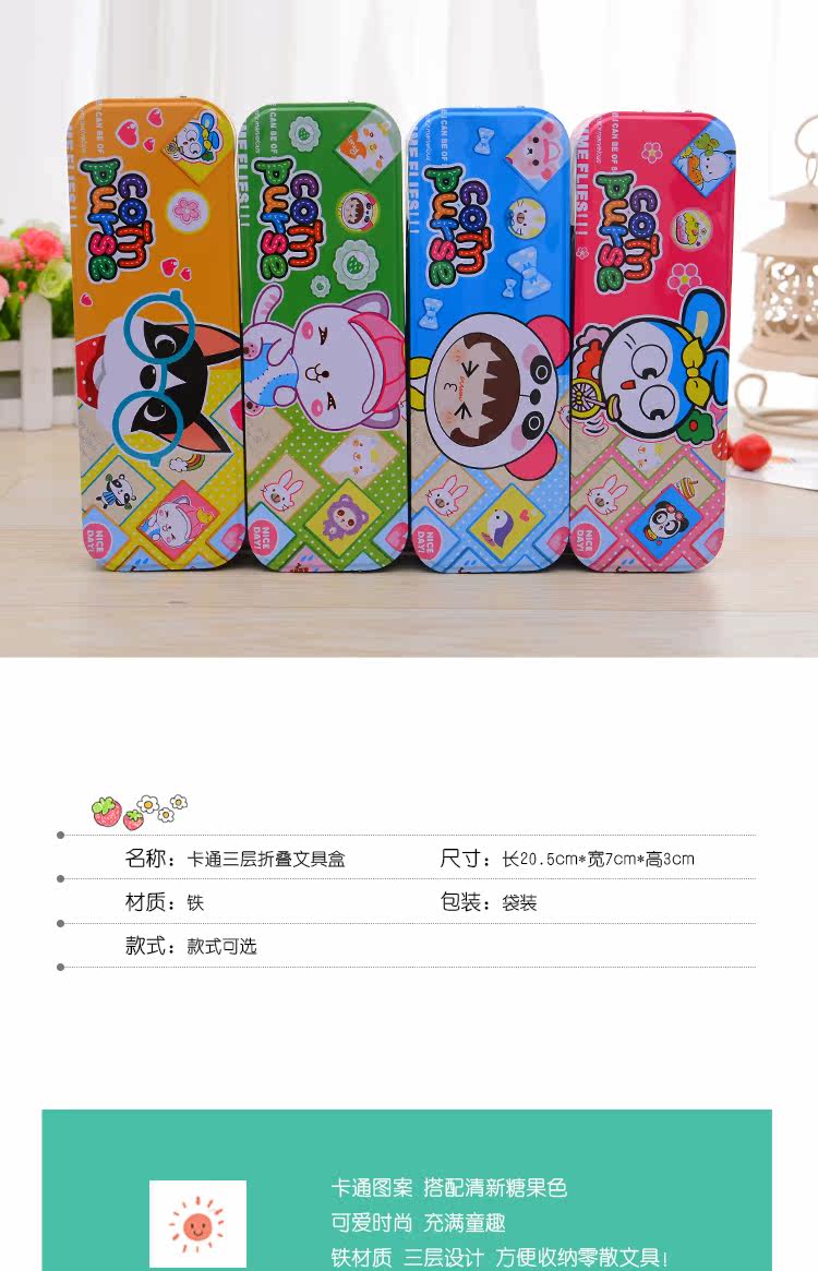 卡通三层折叠多功能儿童文具盒 创意可爱男女小学生用文具用品