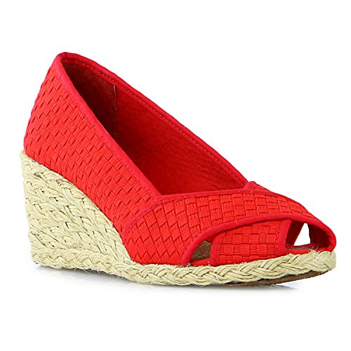 Espadrille wedge featuring peep-toe opening and crisscross vamp straps