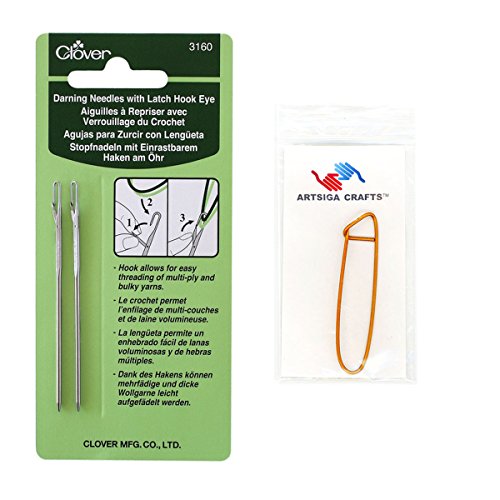 - Bundle includes 1 Clover Darning Needles W/Latch Hook Eye-2/Pkg with 1 Artsiga Crafts Stitch Holder 3160
