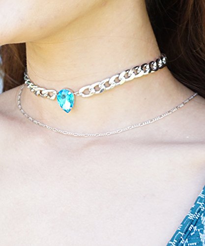 -. Title : Ruby Red Unicorn Tear Choker, Pear Crystal Choker, Curb Chain Teardrop Crystal Choker Necklace, 90s Choker Necklace