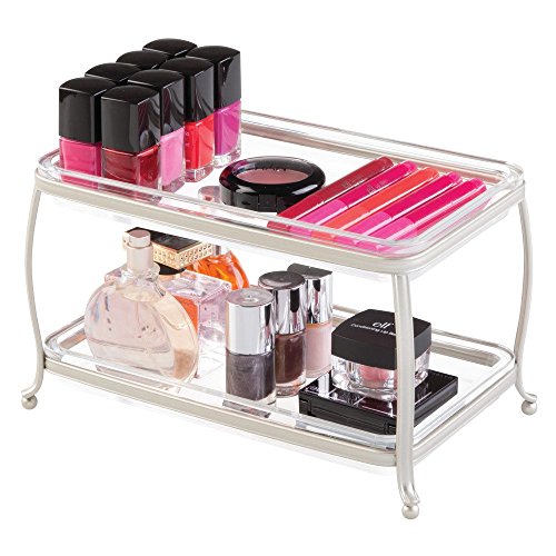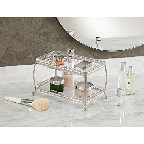 InterDesign York Lyra Double Vanity Cosmetics and Make Up Organizer Tray, Satin/Clear