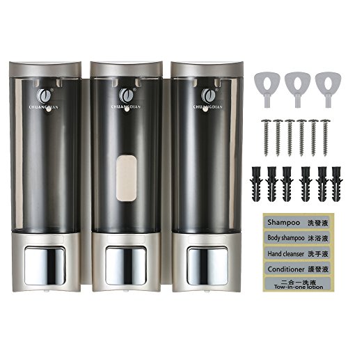 Decdeal CHUANGDIAN Manual Soap Dispensers Wall-mounted Three Chamber Shampoo Box 200ml3