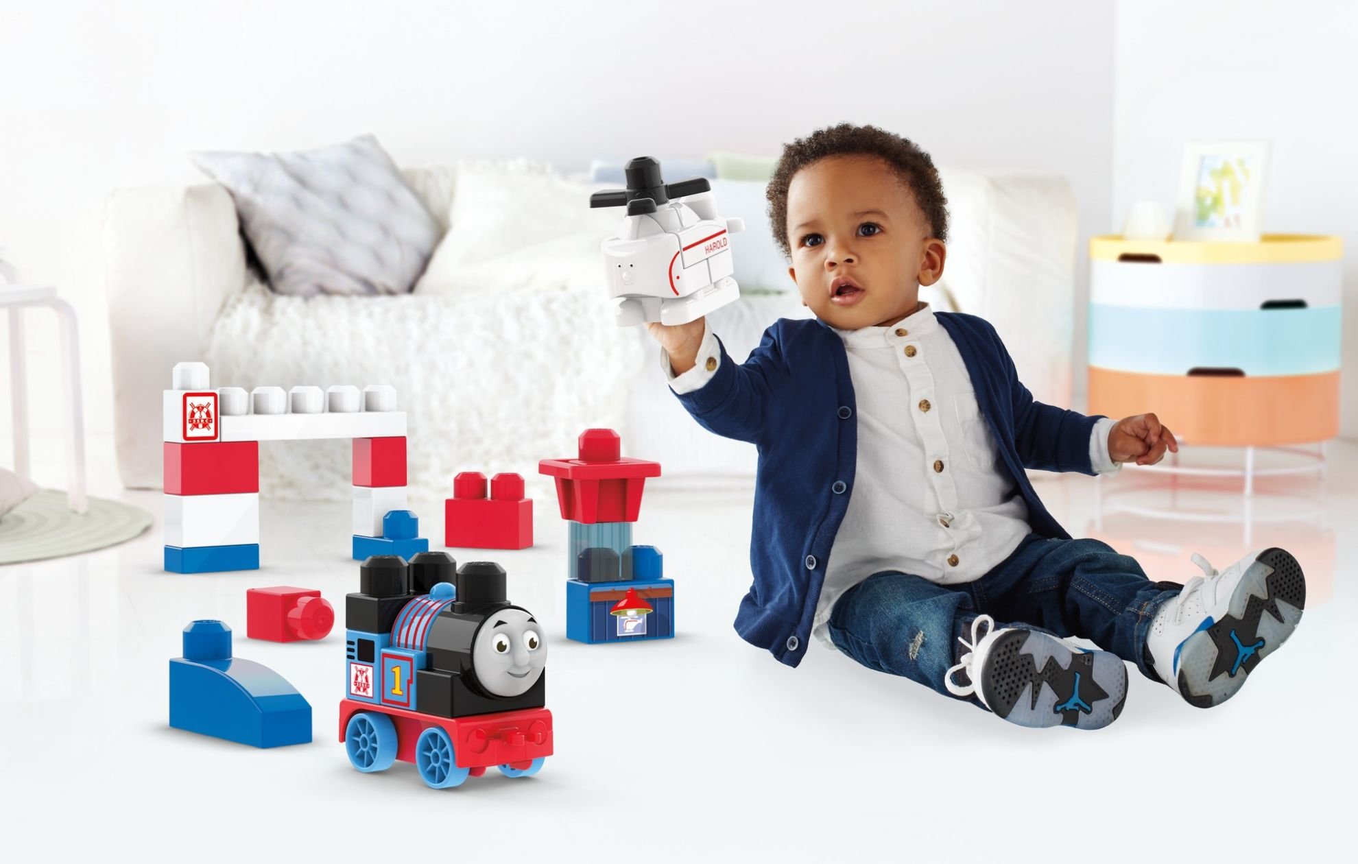 A set of thoroughbred Thomas Harold and block made of blocks.