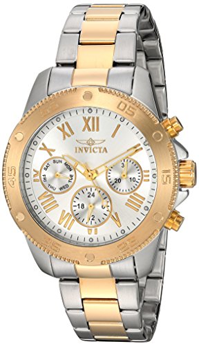 With elegance and style, the Wildflower collection carries with it the quality that Invicta is known for while creatively moving forward in assembling the perfect look. The delightful design complements the warm silver-tone dial, underscores the precise multi-function complication and luxurious 18K gold plating, accentuates the comfortable bracelet and props up the strength of its spectacular 100 meter water resistance capability. Complete your collection with one today. This website is an authorized reseller of Invicta and each piece comes with the manufacturer warranty.Feature