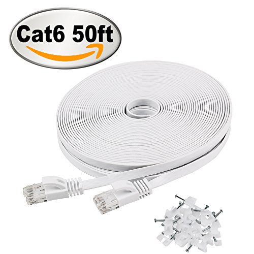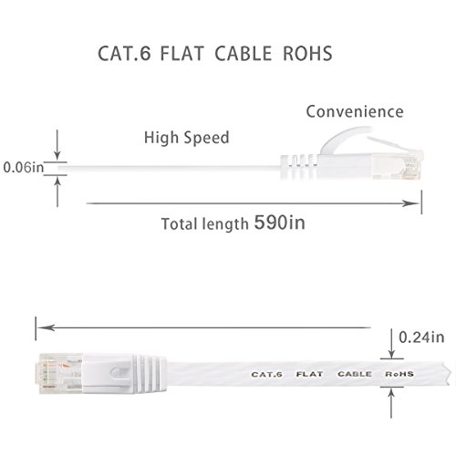 Cat 6 Ethernet Cable 50 ft White – Flat Internet Network Cable– Jadaol Cat 6 Computer Cable With Snagless Rj45 Connectors – 50 feet White (15 Meters)