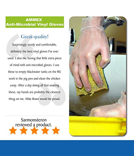 AMMEX - AAMV42100-BX - Vinyl Gloves - Anti-Microbial, Powder Free, Food Safe, Industrial, 3mil, Small, Clear(Box of 200)