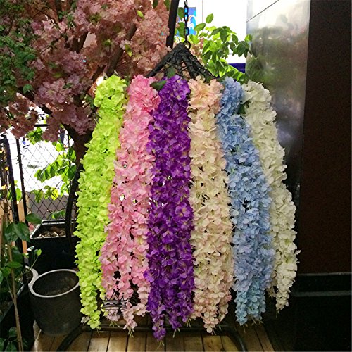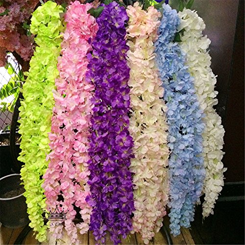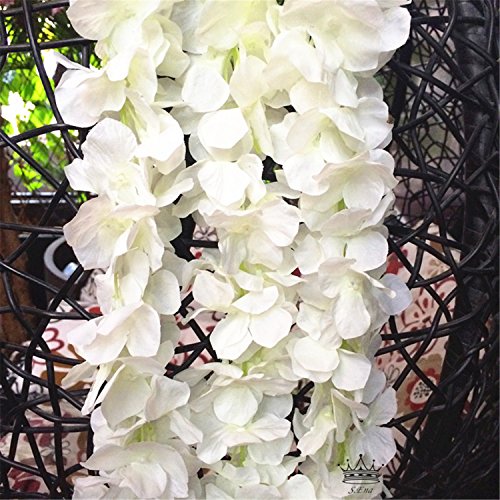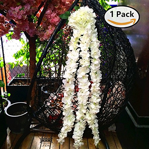 S.Ena, Artificial Silk Fake Flower 3 Tails Hanging Hydrangea with Hydrangea flower Ball Indoor Outside Home Garden Office Veranda Wedding Decor DIY, Pack of 1 (3.6ft/White)