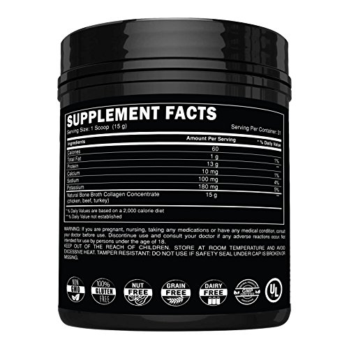 -. Feature : ✔ BONE BROTH COLLAGEN -> Collagen is one of the most important nutrients to boost vitality of your skin, hair, tendon, cartilage, bones, and joints. / ✔ GUT FRIENDLY -> Packed with Gut Friendly Protein and Amino Acids that may help vitalize your bones, tendons, ligaments, muscles, vital organs, skin, hair, and nails. / ✔ TESTED & CERTIFIED -> Other companies claim all kinds of things but ours is actually 3rd party tested and certified by the Paleo & Keto Foundation, and verified non-GMO / ✔ ALL NATURAL, NON-GMO, NO FILLERS, NO BINDERS OR PRESERVATIVES -> Our Premium Bone Broth Collagen is all natural, sourced from sustainable sources and 100% Pure and Potent / ✔ MADE IN USA -> We proudly formulate and manufacture our supplements in Miami, FL. We believe in creating American jobs for the American Economy. That's not politics, that's just P.R.Ide in the "land of the free and the home of the brave."