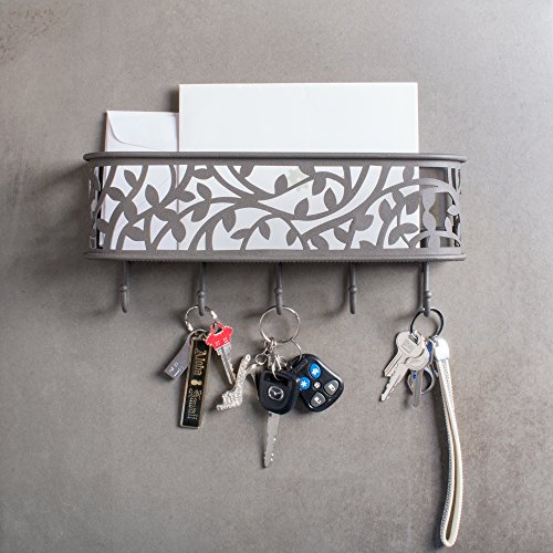 - 5 Key hooks and one mail compartment holder for hanging in a gray finish