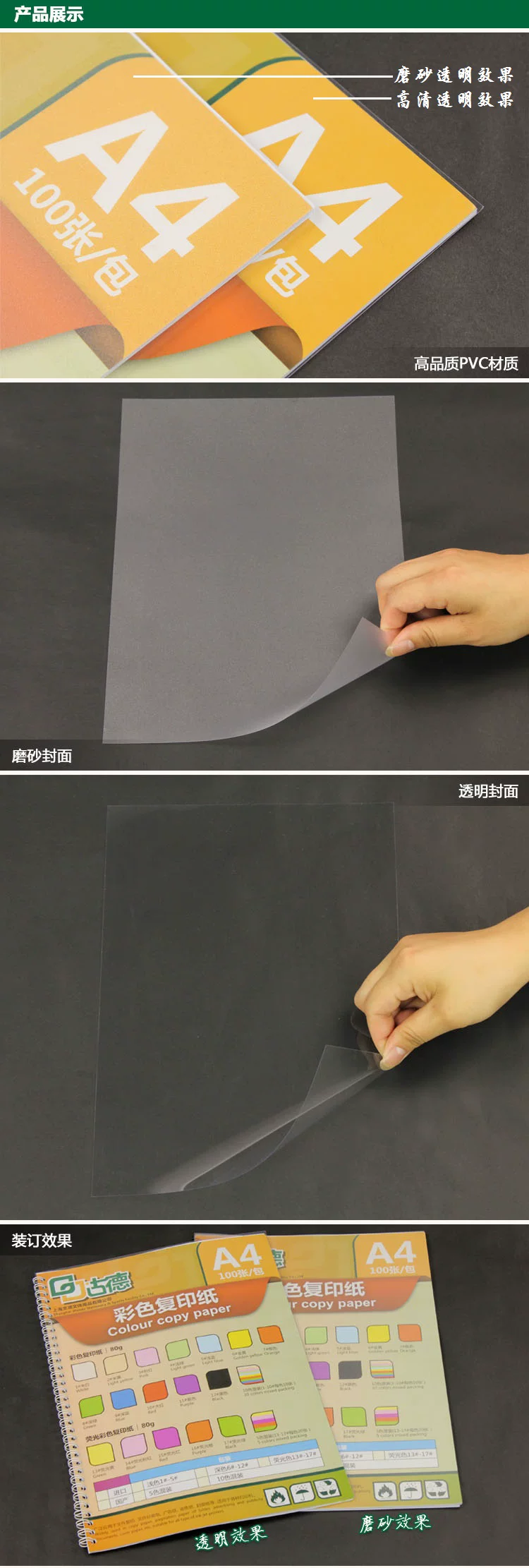 Characteristics and Uses: High-quality p vc hard, translucent, non-toxic, non-polluting, recyclable and widely used text or inside front cover and back cover pages.