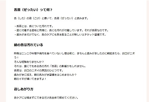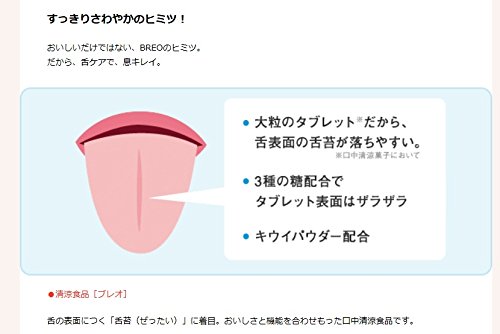 毎朝の息ケアに! 舌みがきタブレット! 舌の表面につく「舌苔(ぜったい)」に着目。おいしさと機能をあわせもった口中清涼食品「ブレオ」です。おいしいだけではない、ブレオのヒミツ。だから、舌ケアで息キレイ。(1)大粒のタブレットだから舌表面の「舌苔」が落ちやすい! (2)3種の糖分配合でタブレット表面がザラザラ(3)キウイパウダー、エリスリトール配合。スリムなタブレットケース入りなので、携帯に便利、いつでもどこでも舌ケアが可能です。酵素の関与成分が、従来のタブレットの1.3倍入りました。