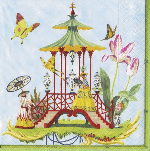 - Entertaining with Caspari garden follies blue luncheon napkin; pack of 20