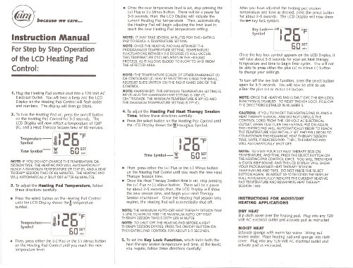 Digital king moist/dry heating pad. Time/temperature flexibility. 60 min auto shut off. STEPS REQUIRED TO TURN ON THE PRODUCT : 1. Plug the heating pad control cord into a 120 volt AC Electrical Outlet. You will hear a beep and the LCD Display on the Heating Pad Control will flash codes and numbers. The display will then go blank. 2. To turn the Heating Pad on, press the on/off button on the Heating Pad Control for 3-5 seconds. The LCD Display will now reflect a temperature of 126 degrees (F) and a Heat Therapy Session time of 60 minutes.