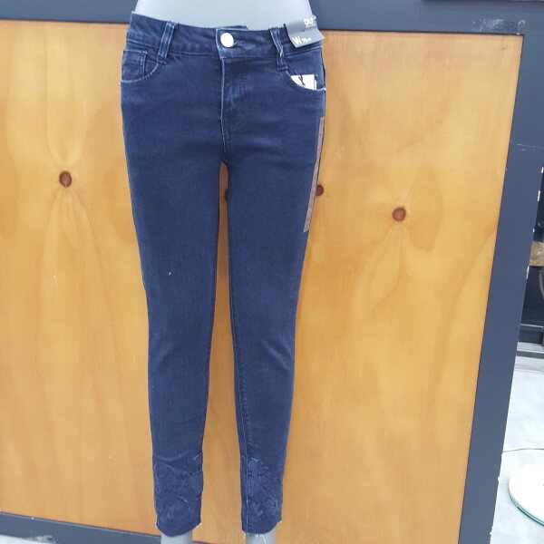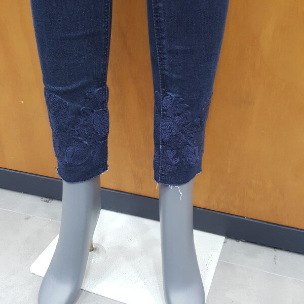 다크한 인디고칼라로 슬림함이 돋보이게해주는 스키니진밑단자수장식으로 여성스럽고 고급스러움강조