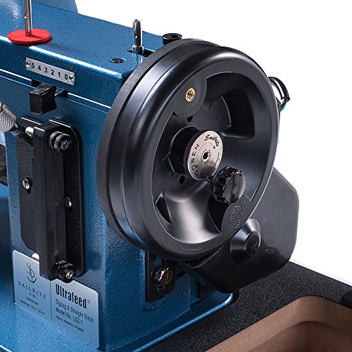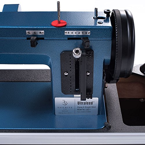 -. Feature : Zigzag/straight stitch walking foot sewing machine that easily sews through heavy materials like sailcloth, heavy canvas, denim, and upholstery fabrics (tried and true in up to 10 layers of heavy canvas and 8 layers of Dacron). / Includes the Power Plus Balance Wheel, which offers twice the power and size of a traditional flywheel. / The patented Posi-Pin clutching system provides 100% power transfer from the balance wheel to the needle. / Extra wide presser foot features a built-in piping tunnel and extra high, 3/8" foot lift and a variable stitch length of up to 6 mm in straight stitch and up to 5 mm in zigzag width. / Top-notch customer support from Sailrite with a full-color guidebook; Set-up, Use and Maintenance DVD; personalized support and a 2-year limited warranty all included.