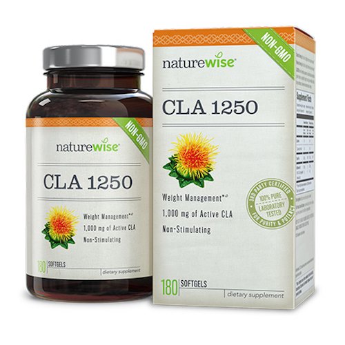 -. Feature : A wise tool for your weight loss goals. Well-designed clinical trials sest that CLA may reduce body fat mass.* Together with a balanced diet and regular exercise, NatureWise CLA 1250 is a great, non-stimulating addition to your overall weight-loss plan / A certified source of 80% standardized CLA. Although CLA is found in beef and dairy, changing agricultural standards have reduced levels available from these sources. Each NatureWise 1250 CLA 1000 mg softgel contains 80% CLA from 100% non-GMO safflower oil / The leading brand of CLA. Industry-best products developed by our on-staff physician and backed by our knowledgeable customer support professionals have made NatureWise CLA 1250 a best-selling weight management supplement / Certified quality and purity. NatureWise CLA 1250 is manufactured in the USA in an NSF/GMP certified facility, assuring you that your purchase meets strict standards for ingredient quality and safety. All natural, non-stimulating, and gluten-free / Responsive customer support. Our unsurpassed service professionals are available to answer any questions you may have. Support is only a phone call away