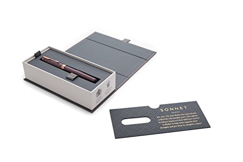 Studio : Newell Rubbermaid Office Publisher : Newell Rubbermaid Office Binding : Office Product Product Description Rejoice in clean and beautiful writing with a PARKER Sonnet rollerball pen. Timeless and elegant, this rollerball pen with fine stainless steel tip boasts a chiseled sterling silver cap, a barrel with purple lacquer finish, and a rose gold-finished clip and trim. It is meticulously hand assembled and checked for flawless quality, providing high precision and exceptional writing comfort. Available in an array of designs, including the enduring Chisel pattern, the Sonnet is a work of beauty, emblematic of PARKER craftsmanship. Bringing refined style to every writing occasion, the pen arrives in a PARKER premium gift box, ready for presentation. 0