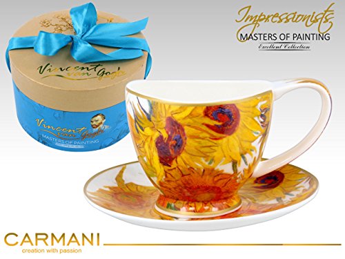 -. Brand : Carmani Painters -. Feature : Carmani Painters "Bloom" Tea Cup or Mug Porcelain Collection, by Vincent Van Gogh / Dimensions: 1 x Cup 3"H x 3.5"W; Volume 8 Oz; 1 x Saucer 6" / Famous "Bloom" Image of Vincent Van Gogh Paintings, Premium Quality Luxury Porcelain / Makes a Unique and Sophisticated Gift, Dishwasher Safe / Made in Poland -. Label : Carmani Painters -. Manufacturer : Carmani Painters -. ProductGroup : Kitchen -. ProductTypeName : KITCHEN -. Publisher : Carmani Painters -. Studio : Carmani Painters -. Title : Carmani Painters Tea Cup or Mug, Porcelain Collection by Vincent Van Gogh