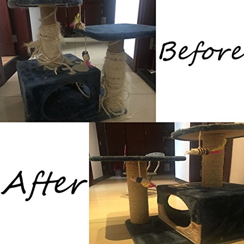 You may trouble with how fast your little cats destroyed the rope on the scratching post but the structure is still good. Or you may worry about that your cats will get strange and unhappy if you throw away the old ones. But now with the natural rope and some glue, you can make the old ones as new. It helps to save your money and also get your furniture away from the little paws.