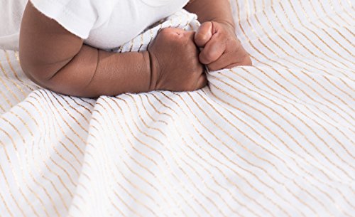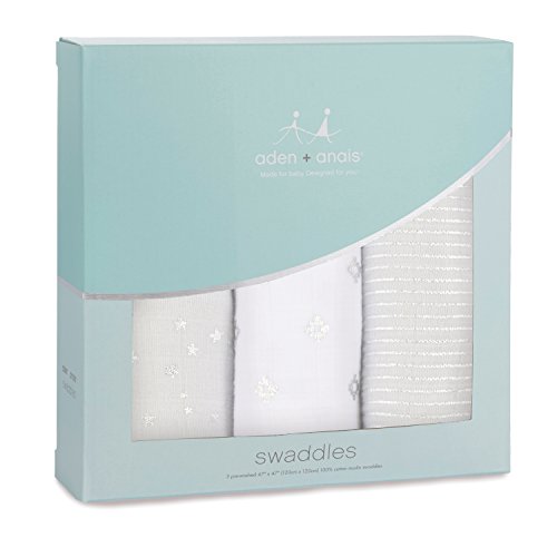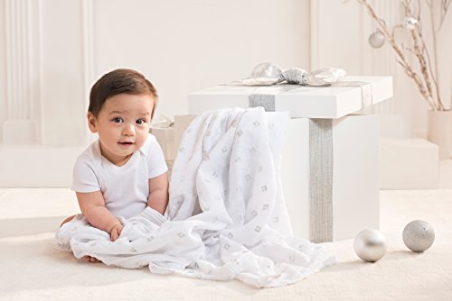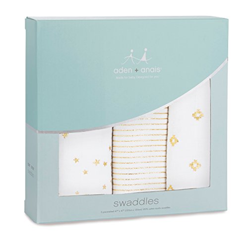 -. Feature : Includes: 3 pre-washed 100% cotton muslin shimmery swaddles / Versatile: works as a swaddle, stroller or nursing cover, burp cloth, tummy time blanket, changing pad cover and more / Metallic: P.R.Ints as soft as they are shimmery / Breathable: helps reduce the risk of overheating / Machine washable: stays soft wash after wash