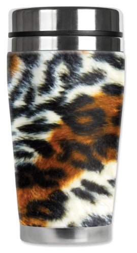 Mugzie Multi Color Leopard Travel Mug with Insulated Wetsuit Cover, 16 oz, Black