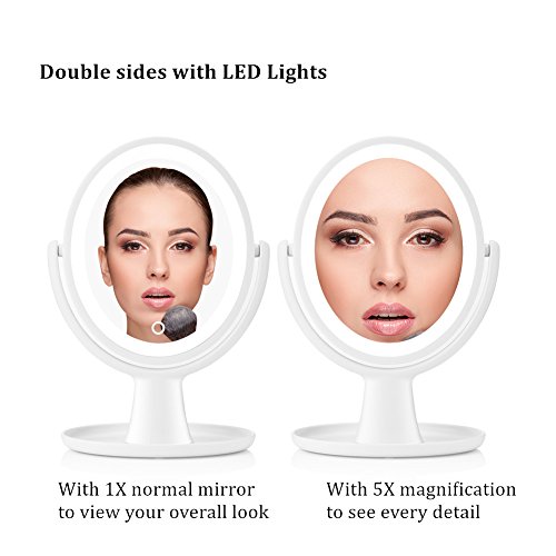 - POOR MAKEUP? NO PROBLEM: Two magnifying settings, 1X magnification to view your overall look, 5X magnification to see every detail that ideal for focusing a specific section of your face like apply eye makeup, line your lips, tweeze eyebrow and more.
