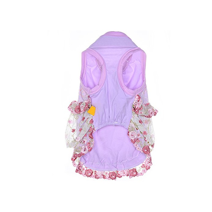 YUNT Yunt 견복 애완동물 용품 둥실둥실 꽃 레스 원피스 하복묘 복견복 T-셔츠 나비매듭 자수 환기성 봄과 여름 추용 산책 퍼플 소형견 중형견 베스트