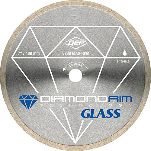 QEP 6-7006GLQ 7-Inch Continuous Rim Glass Tile Diamond Blade, 7mm Rim Height, 5/8-Inch Arbor, Wet Cutting, 8730 Max RPM