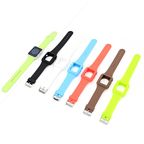 - Feature : Compatible with Apple Watch 2015 Released 38mm only. / Well designed, engineered and manufactured from high quality synthetic rubber to fit 140-210mm wrists, Nice Touch Feeling & Stainless Steel Buckle. / Full access to all ports and buttons. / Precise cut holes to fit well for most wrist, Incredible fit and comfort for fitness lovers and everyday use. / No hassle, super easy to remove the old one and replace with this one.