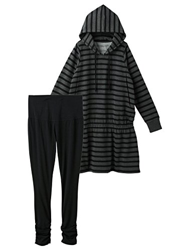 -. Title : Angeliebe エンジェリーベ 授乳 口 付 裏 起毛 ボーダー パーカ ワンピ & 産後 も 使える レギンス セット