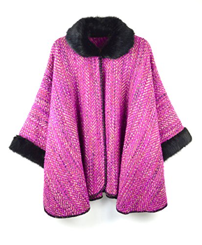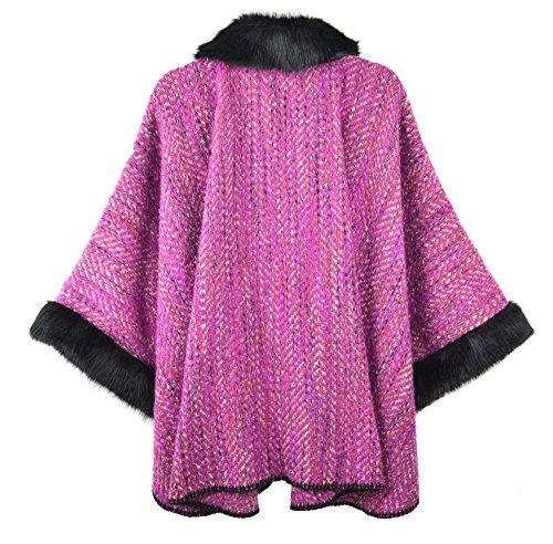 Bruceriver Women Luxury Faux Fur Poncho Topper Cloak Coat Sweater Cap Wraps