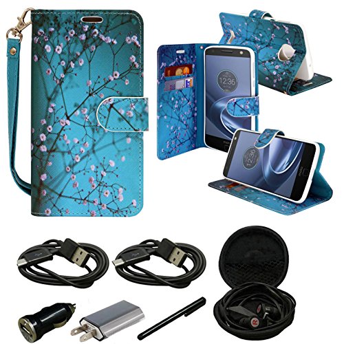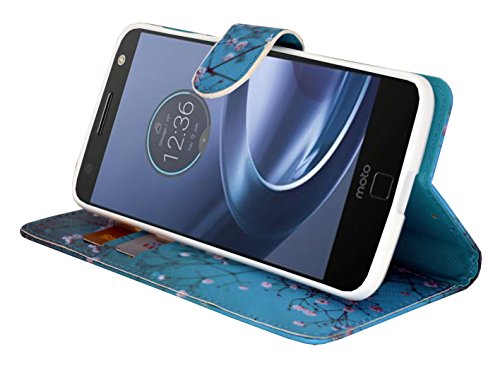 Moto Z Force Case Wallet Case, Slim Flip Folio [Kickstand Feature] Pu Leather Wallet Case with ID & Credit Card Slot For Moto Z Force Edition - With Accessories (Blooming Teal)