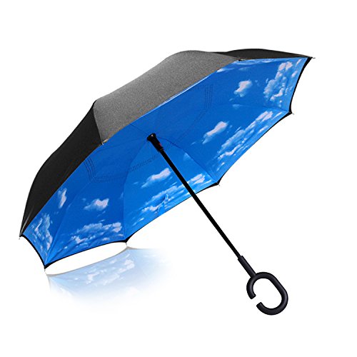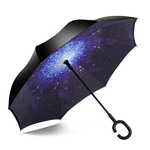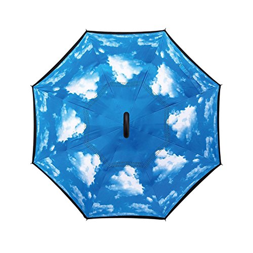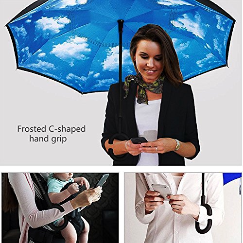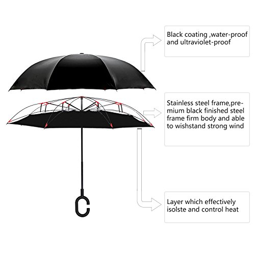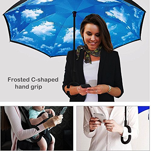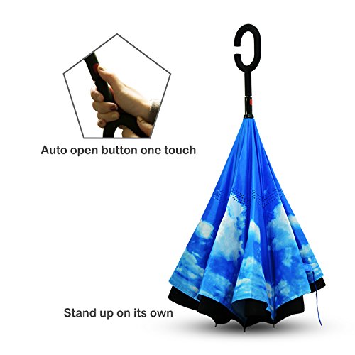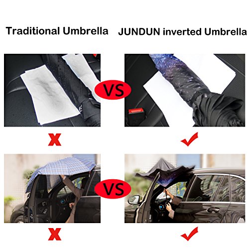 JUNDUN Reverse Inverted Umbrella Windproof Double Layer Auto Open Folding Umbrella Self Stand U...