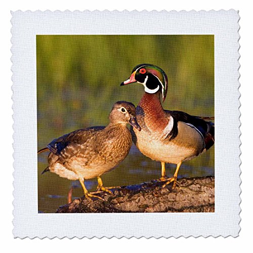 3dRose Wood Ducks Male and Female on Log In Wetland, Marion, Illinois, USA. - Quilt Square, 6 by 6-Inch (qs_209213_2)
