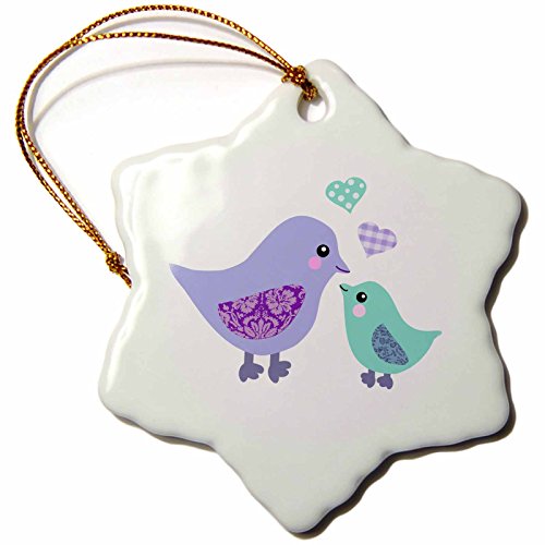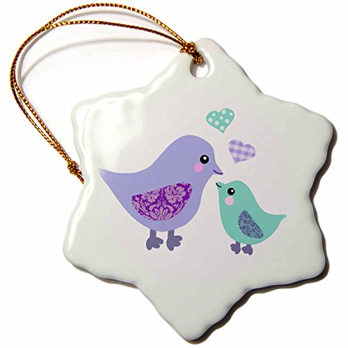 3dRose LLC orn_120281_1 Porcelain Snowflake Ornament, 3-Inch, "Cute Purple Mom Bird and Blue Baby Chick Boy-Kawaii Birds-For Mothers Day"