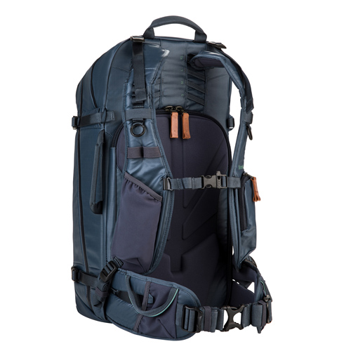 ●Explore40は、機材にリアとサイドからアクセスでき、リュックベルトは体型に合わせて根元から高さ調節可能で、携帯電話、日焼け止めなど小物が収まるクイックアクセスポケットを装備しています。