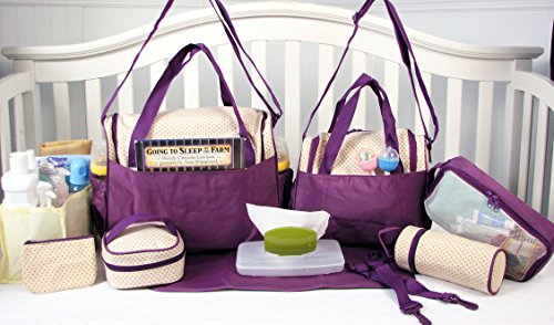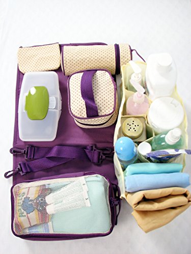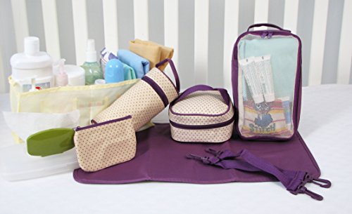- Feature : Great 10 pieces Fashion diaper bag set for stylish Mom. Made of 100% Nylon, easy to wipe clean / 1. Extra roomy main compartment with multipe pockets ,Reliable zip-top closure with carrying strap, 2. Mid-Size Tote bag with zipper closure and shoulder strape for busy mom on the go. / 3. Small Accessories case with zip closure for mom on the go. 4. Matching Padded Changing Station / 5.Multi-purpose function mesh bag for clothing, snacks or others stuffs. 6.Translucent wipes case see through for your reloads. 7. Insulated zippered Bottle bag, fits Most size bottle. 8. A pair of Grips strollers attachments / 9.SoHo Diaper Bag Insert Organizer;Ideal for storage baby's diapers, toys, water bottles, snack, small towels, etc. 10. A small zippered wipe case with handle for dry or wet item.** Please All items in the insert orgainzer are not included, they are for picture purpose only **